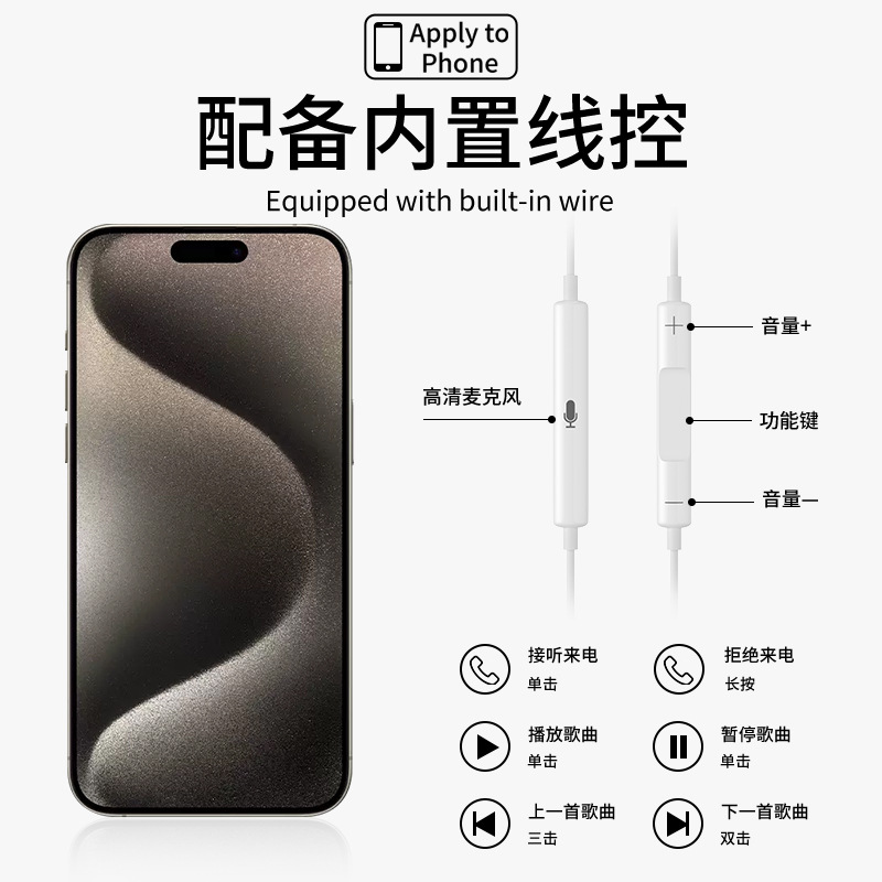 适用苹果16pro有线耳机typec接口3.5mm线控iphone15promax圆plus
