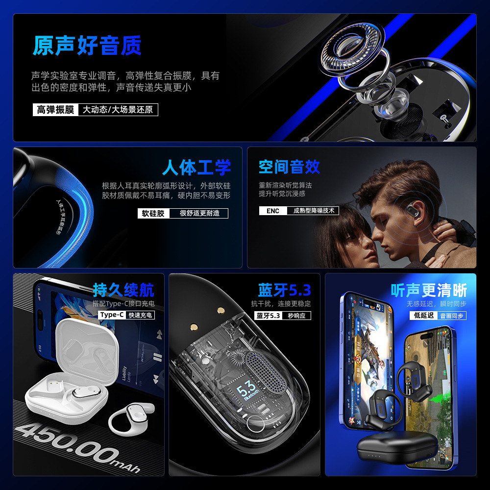 挂耳式OWS蓝牙耳机Y30开放式不入耳佩戴运动无线私模蓝牙耳机