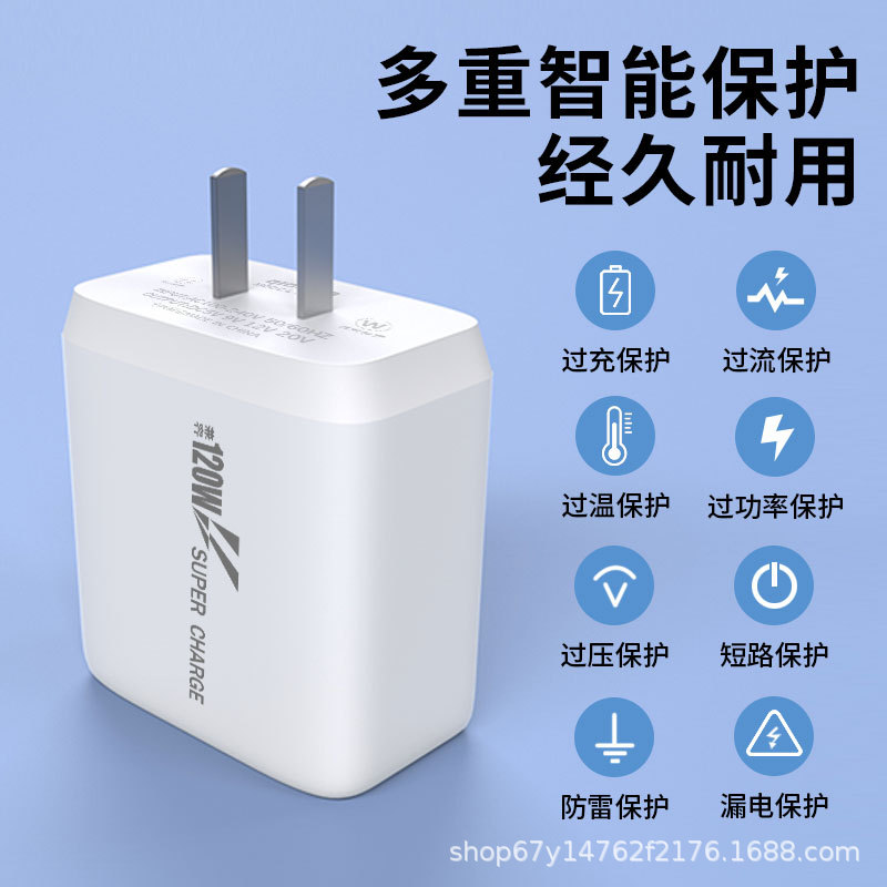 通用120W手机全兼容充电器华为数据线超级闪充充电宝快充线充电头