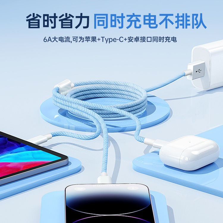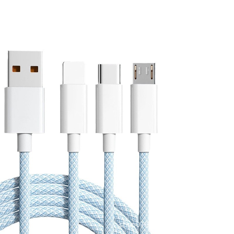 适用苹果一拖三编织快充数据线车载三合一type-c华为安卓 充电线